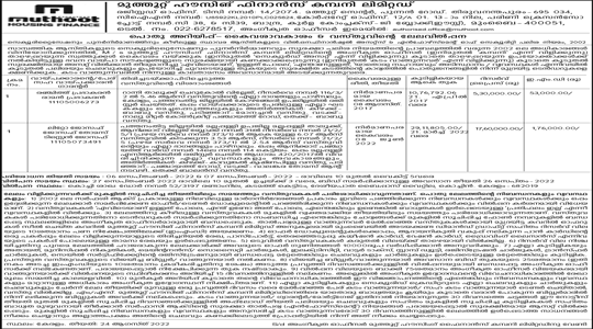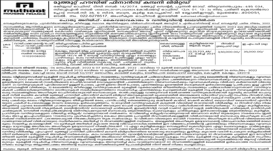 In exercise of powers contained in the Securitization and Reconstruction of Financial Assets & Enforcement of Security Interest Act, 2002, the Authorized Officer of the Muthoot Housing Finance Company Ltd., (hereinafter referred to as the “Company”) has taken the possession of under mentioned properties (hereinafter referred to as “Secured Asset”) and held as security in respect of HOUSING Loan facilities granted to below mentioned customers (hereinafter referred to as “Borrowers”) and further It has been decided to sell the Secured Asset on “as is where is”, “as is what is”, “whatever there is” and “no recourse” basis/conditions by inviting sealed tenders from public in respect of the secured debt amounting to amount in below with further interest and expenses thereon till final payment of the overdue from Borrowers.